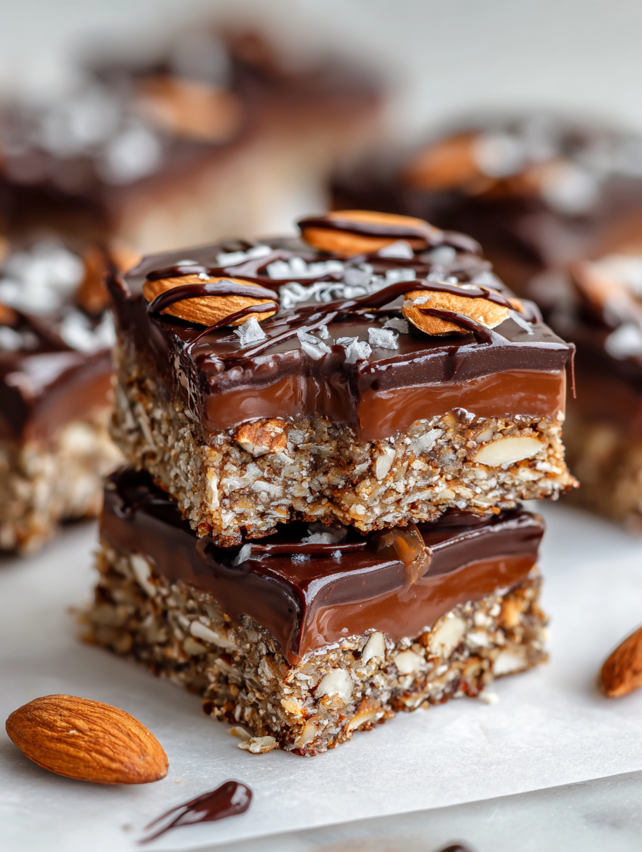 - Serve the bars chilled or at room temperature, garnished with a sprinkle of extra almonds or a pinch of sea salt if desired.
