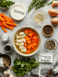 - Whole chicken or chicken parts: The soul of the soup. Use a whole bird for richer flavor, or parts if you want quicker prep.